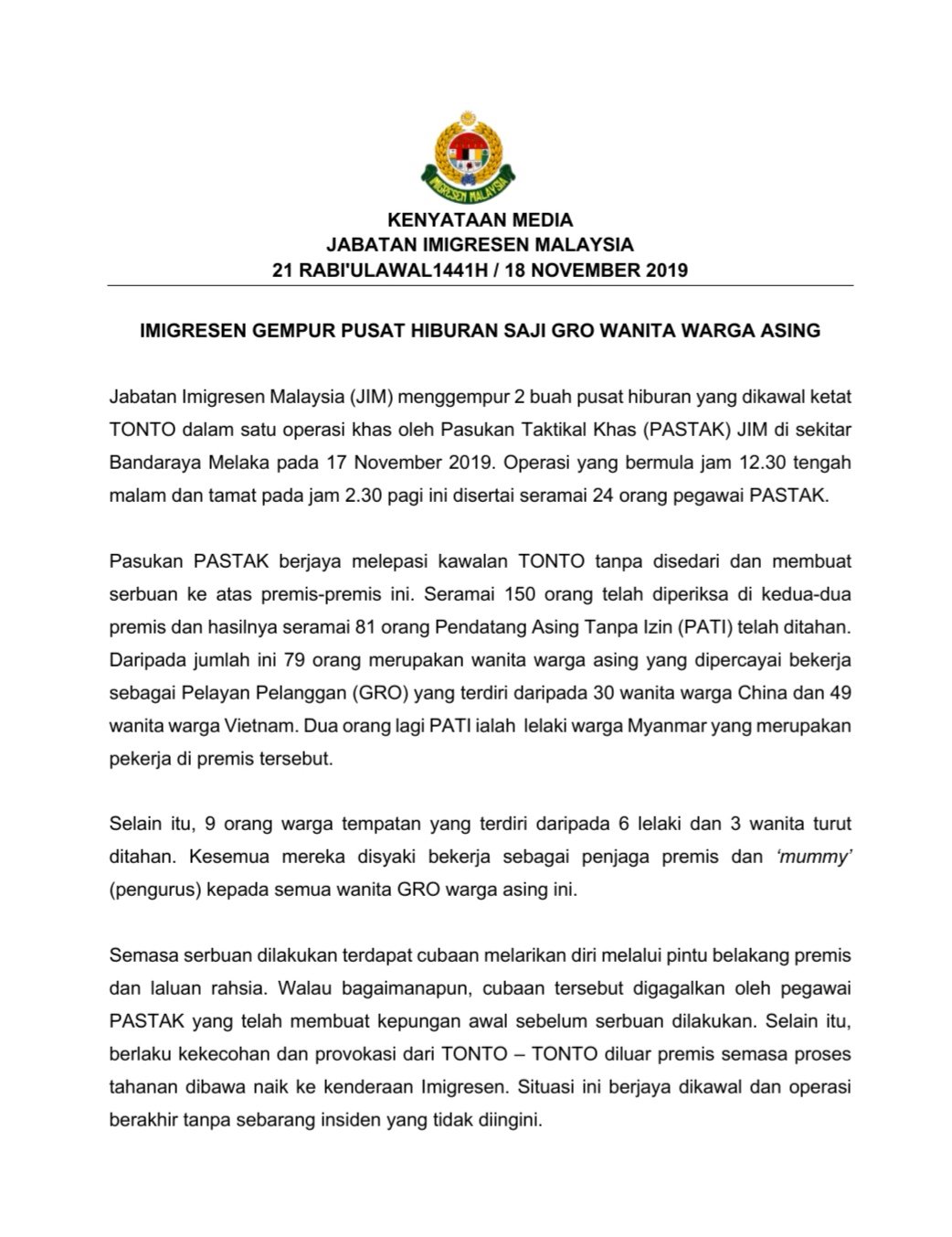 Ditatang bagai minyak yang penuh itu perumpamaan tepat bagi menggambarkan layanan kerajaan terhadap pendatang asing tanpa izin pati yang ditahan di depot tahanan. Pada asalnya Depot ini merupakan Pengkalan Unit Kawalan KawasanUKK bagi menempatkan anggota-anggota unit tersebut. Jabatan Imigresen Malaysia Contact Phone Number is.